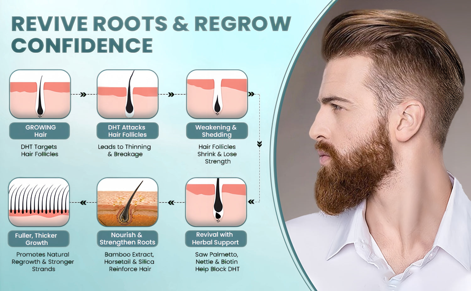 By lowering DHT, your follicles stay open and nourished, supporting regrowth, thickness, and healthier hair long term.